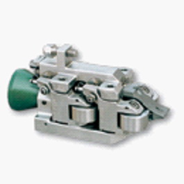 导辊高度为30mm~18mm,用于高线材精轧的轧机入口。“两根拉伸弹簧+四个调整螺钉”调节四个支臂开合,从而调节两对导辊的开口度;有蜗轮蜗杆调节的两对端面凸轮微调装置,可在线微调两对导卫辊的开口度,这种调节是一种单点对称调节。导辊轴承采用油气润滑。支臂上有冷却水孔,喷水冷却导辊。冷却水从箱体底部接入,进入支臂,由支臂上的喷水孔喷出,冷却各自的导辊。导卫安装面在箱体底部,呈V形,定位更精确、牢靠。配有导卫尖,使细小轧件导向更精确,并能防止轧件倒尾。 |