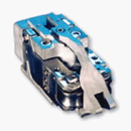 导辊高度为35mm~20mm,用于线材精轧的轧机入口。“压缩弹簧+调整螺钉”调节支臂开合,从而调节一对导辊的开口度;调整螺钉上有防松螺母。导辊轴承采用油气润滑。支臂上有冷却水孔,喷水冷却导辊。箱体和支臂都较厚实,强度高。配有导卫尖,使细小轧件导向更精确,并能防止轧件倒尾。